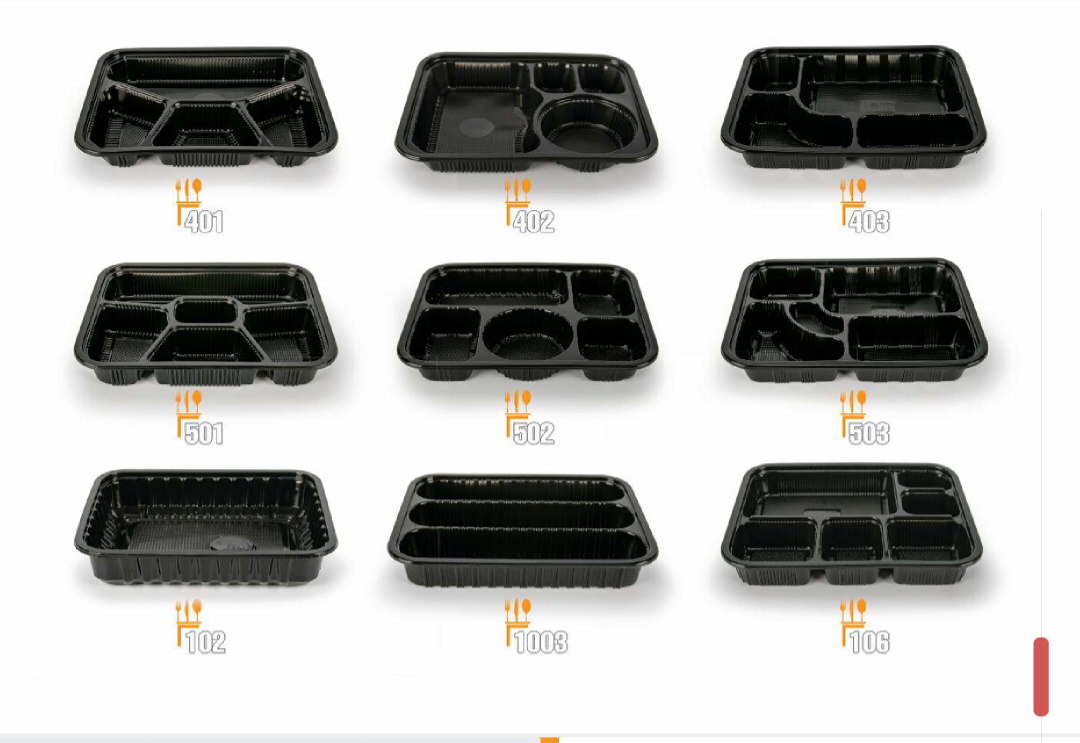 یکی از جدیدترین و خاص ترین محصولاتی که چند سالی است در حوزه بسته بندی مورد توجه قرار گرفته است، ظروف یکبار مصرف چند قسمتی مشکی می باشد. این ظروف در مدلهای یک قسمتی و چند قسمتی همراه با درب طراحی شده اند که برای پذیرایی و سرو انواع غذا و خوراکی به ویژه غذای داغ مورد استفاده قرار می گیرند.